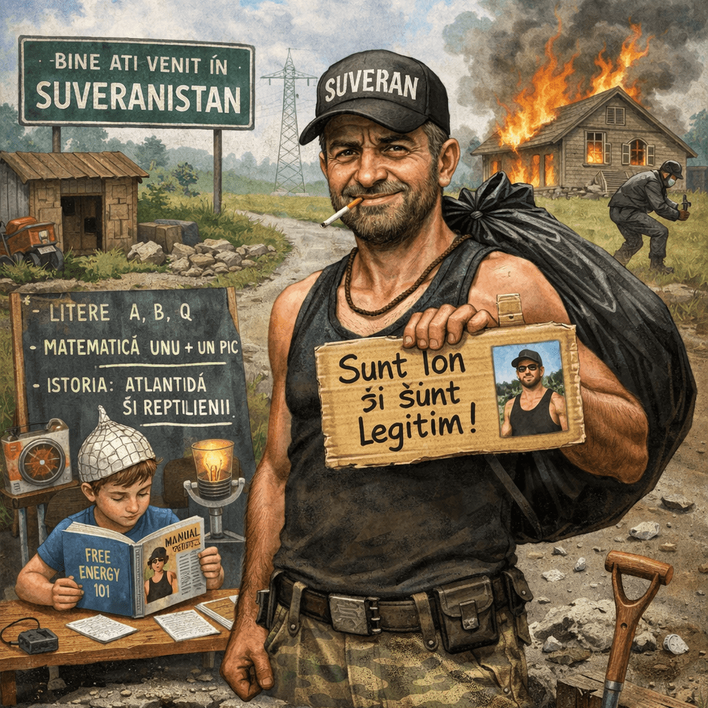 Când te oprește poliția, explici calm că ești un stat suveran într-un singur om și că semnătura ta are valoare morală superioară oricărei ștampile. Funcționarii publici oricum lucrează din pasiune, nu din salarii, nu?